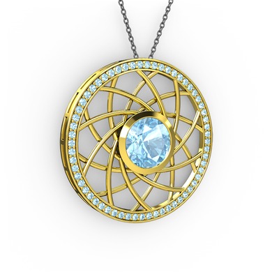 Akuamarin 8 ayar altın kolye (40 cm gümüş rolo zincir)