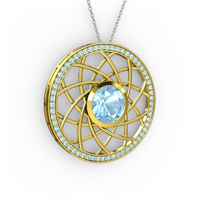 Akuamarin 925 ayar altın kaplama gümüş kolye (40 cm gümüş rolo zincir)