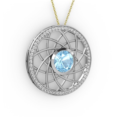Akuamarin ve pırlanta 14 ayar beyaz altın kolye (0.66 karat, 40 cm altın rolo zincir)
