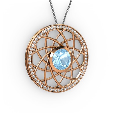 Akuamarin ve pırlanta 14 ayar rose altın kolye (0.66 karat, 40 cm gümüş rolo zincir)