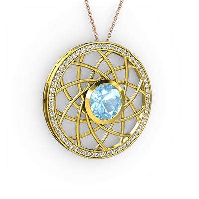 Akuamarin ve pırlanta 18 ayar altın kolye (0.66 karat, 40 cm gümüş rolo zincir)