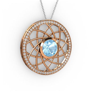 Akuamarin ve pırlanta 8 ayar rose altın kolye (0.66 karat, 40 cm beyaz altın rolo zincir)
