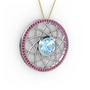 Akuamarin ve rodolit garnet 8 ayar beyaz altın kolye (40 cm gümüş rolo zincir)