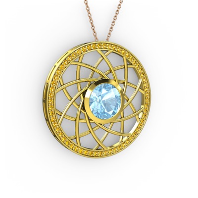 Akuamarin ve sitrin 925 ayar altın kaplama gümüş kolye (40 cm rose altın rolo zincir)