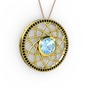 Akuamarin ve siyah zirkon 925 ayar altın kaplama gümüş kolye (40 cm rose altın rolo zincir)