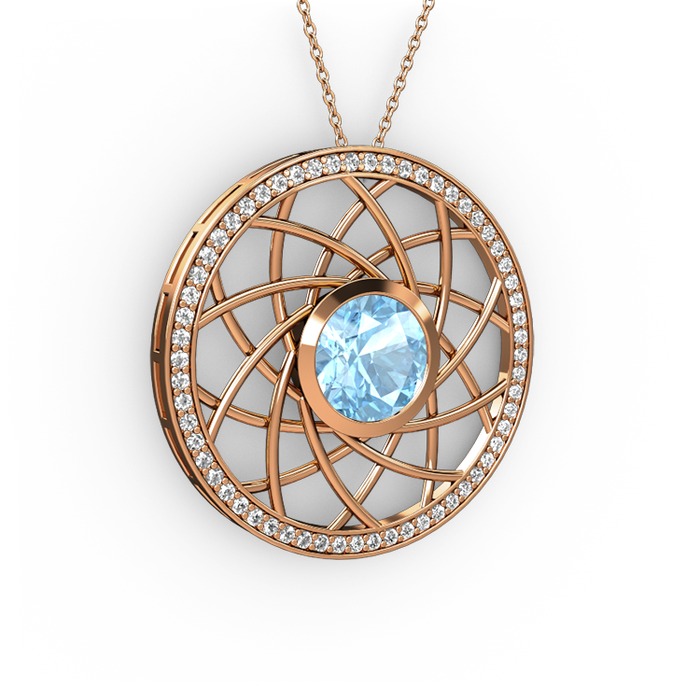 Akuamarin ve swarovski 18 ayar rose altın kolye (40 cm rose altın rolo zincir)