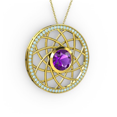 Ametist ve akuamarin 8 ayar altın kolye (40 cm altın rolo zincir)
