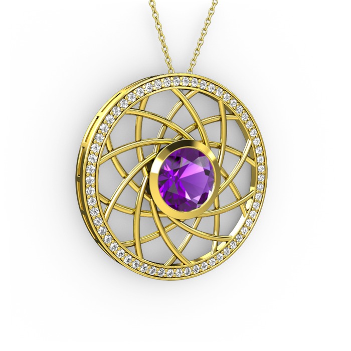 Ametist ve beyaz zirkon 14 ayar altın kolye (40 cm gümüş rolo zincir)