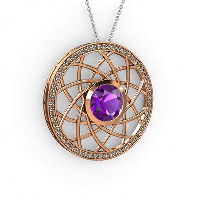 Ametist ve dumanlı kuvars 8 ayar rose altın kolye (40 cm beyaz altın rolo zincir)