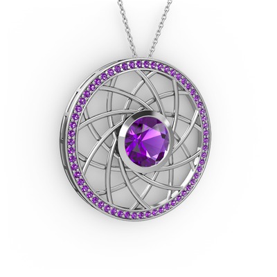 Ametist 925 ayar gümüş kolye (40 cm beyaz altın rolo zincir)