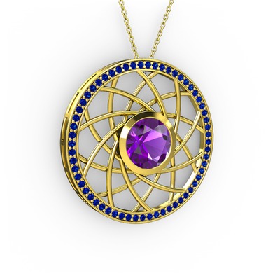 Ametist ve lab safir 8 ayar altın kolye (40 cm gümüş rolo zincir)