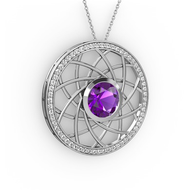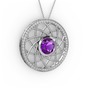 Ametist ve pırlanta 925 ayar gümüş kolye (0.66 karat, 40 cm gümüş rolo zincir)