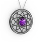 Ametist ve pırlanta 925 ayar siyah rodyum kaplama gümüş kolye (0.66 karat, 40 cm beyaz altın rolo zincir)