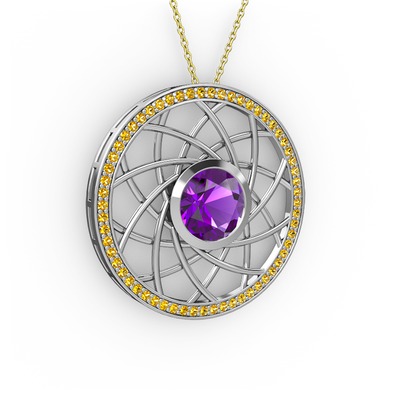 Ametist ve sitrin 18 ayar beyaz altın kolye (40 cm altın rolo zincir)