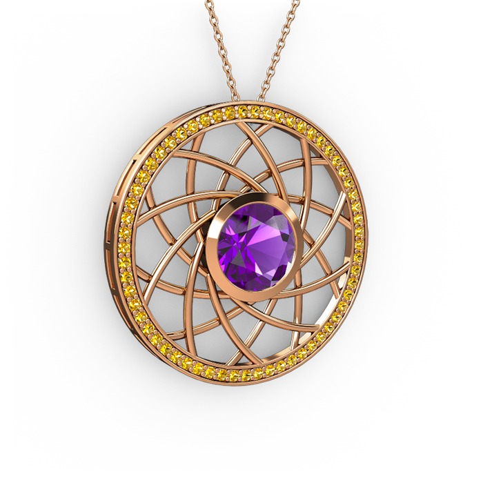 Ametist ve sitrin 925 ayar rose altın kaplama gümüş kolye (40 cm rose altın rolo zincir)