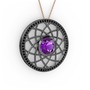 Ametist ve siyah zirkon 925 ayar siyah rodyum kaplama gümüş kolye (40 cm rose altın rolo zincir)