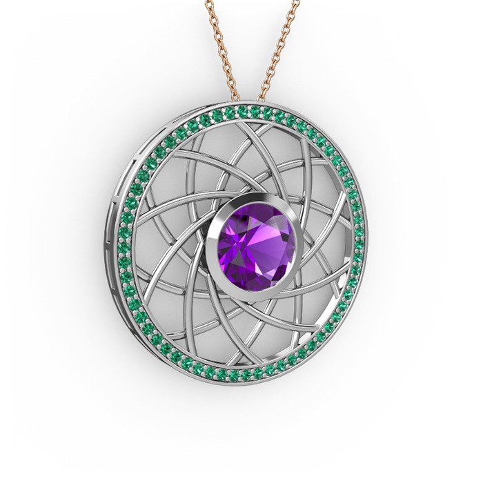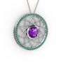Ametist ve yeşil kuvars 8 ayar beyaz altın kolye (40 cm rose altın rolo zincir)