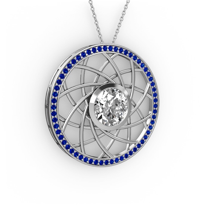Beyaz zirkon ve lab safir 8 ayar beyaz altın kolye (40 cm beyaz altın rolo zincir)