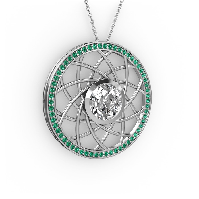 Beyaz zirkon ve yeşil kuvars 925 ayar gümüş kolye (40 cm beyaz altın rolo zincir)