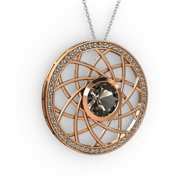 Dumanlı kuvars 18 ayar rose altın kolye (40 cm beyaz altın rolo zincir)