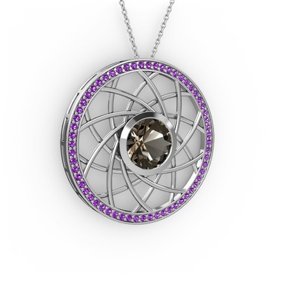 Dumanlı kuvars ve ametist 14 ayar beyaz altın kolye (40 cm gümüş rolo zincir)