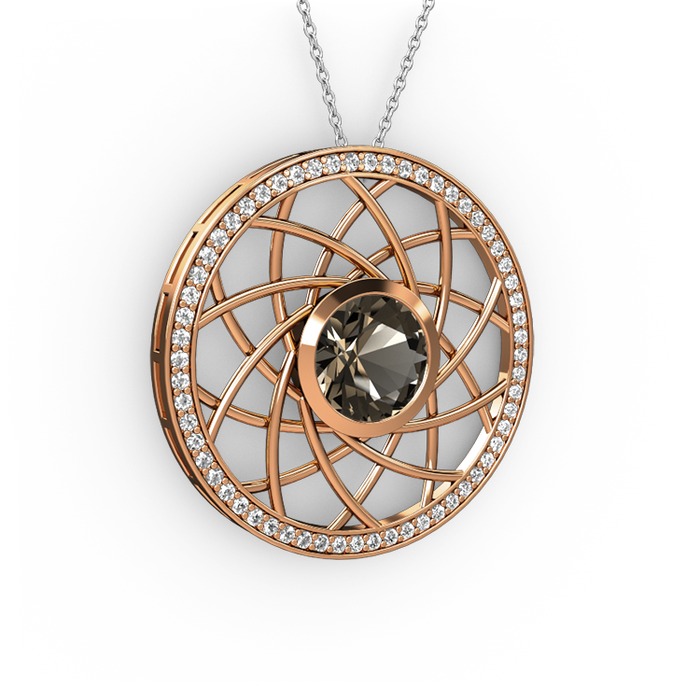Dumanlı kuvars ve beyaz zirkon 8 ayar rose altın kolye (40 cm gümüş rolo zincir)