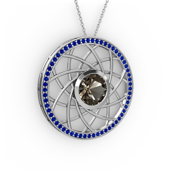 Dumanlı kuvars ve lab safir 14 ayar beyaz altın kolye (40 cm beyaz altın rolo zincir)