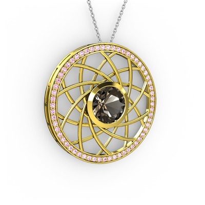 Dumanlı kuvars ve pembe kuvars 18 ayar altın kolye (40 cm gümüş rolo zincir)