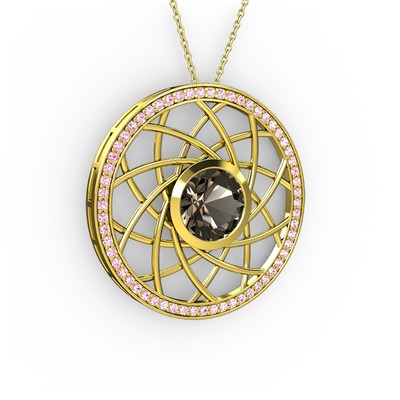 Dumanlı kuvars ve pembe kuvars 18 ayar altın kolye (40 cm gümüş rolo zincir)