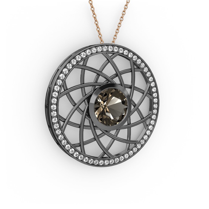 Dumanlı kuvars ve pırlanta 925 ayar siyah rodyum kaplama gümüş kolye (0.66 karat, 40 cm rose altın rolo zincir)