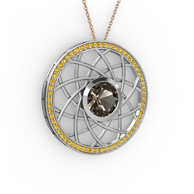 Dumanlı kuvars ve sitrin 14 ayar beyaz altın kolye (40 cm rose altın rolo zincir)