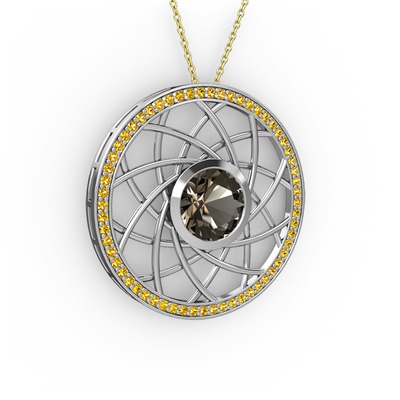 Dumanlı kuvars ve sitrin 18 ayar beyaz altın kolye (40 cm altın rolo zincir)