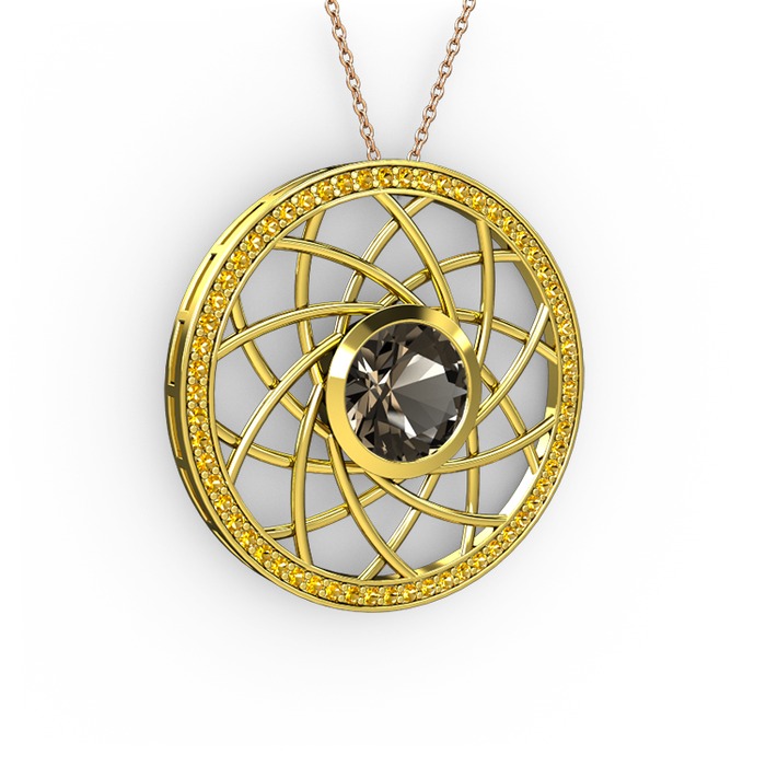 Dumanlı kuvars ve sitrin 925 ayar altın kaplama gümüş kolye (40 cm gümüş rolo zincir)