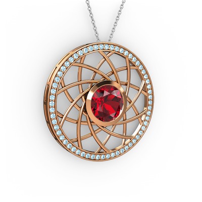 Garnet ve akuamarin 8 ayar rose altın kolye (40 cm beyaz altın rolo zincir)