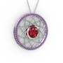 Garnet ve ametist 925 ayar gümüş kolye (40 cm beyaz altın rolo zincir)
