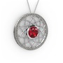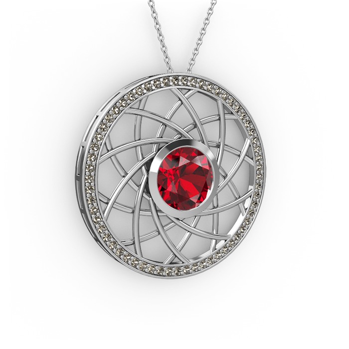 Garnet ve dumanlı kuvars 14 ayar beyaz altın kolye (40 cm gümüş rolo zincir)