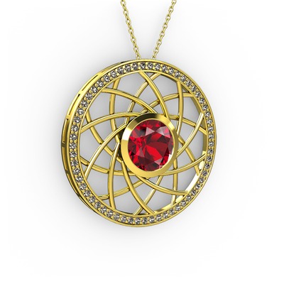 Garnet ve dumanlı kuvars 18 ayar altın kolye (40 cm gümüş rolo zincir)