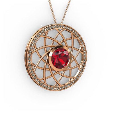 Garnet ve dumanlı kuvars 8 ayar rose altın kolye (40 cm gümüş rolo zincir)