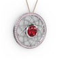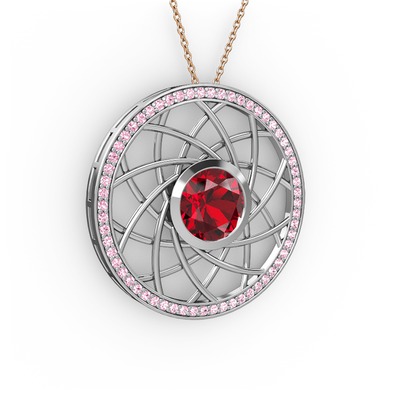 Garnet ve pembe kuvars 925 ayar gümüş kolye (40 cm rose altın rolo zincir)