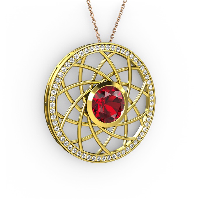 Garnet ve pırlanta 925 ayar altın kaplama gümüş kolye (0.66 karat, 40 cm rose altın rolo zincir)