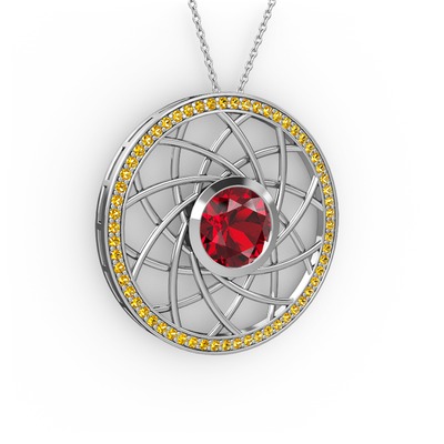 Garnet ve sitrin 14 ayar beyaz altın kolye (40 cm beyaz altın rolo zincir)