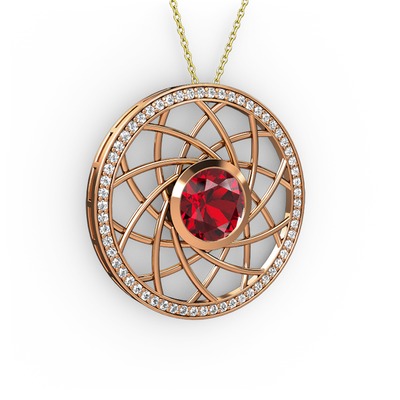 Garnet ve swarovski 18 ayar rose altın kolye (40 cm altın rolo zincir)