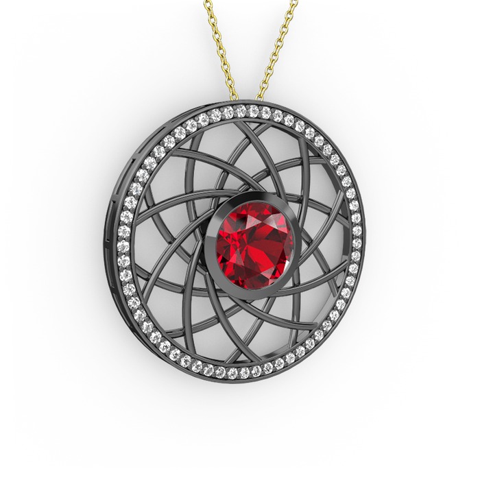 Garnet ve swarovski 925 ayar siyah rodyum kaplama gümüş kolye (40 cm altın rolo zincir)