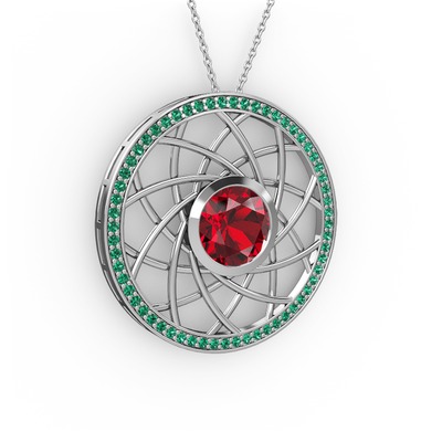 Garnet ve yeşil kuvars 18 ayar beyaz altın kolye (40 cm beyaz altın rolo zincir)