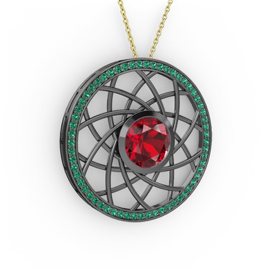 Garnet ve yeşil kuvars 925 ayar siyah rodyum kaplama gümüş kolye (40 cm gümüş rolo zincir)