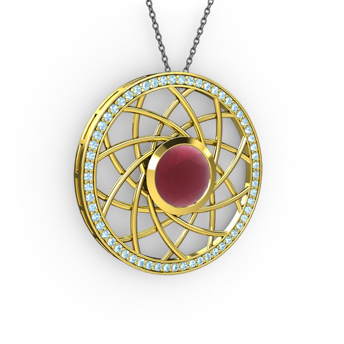 Kök yakut ve akuamarin 18 ayar altın kolye (40 cm gümüş rolo zincir)