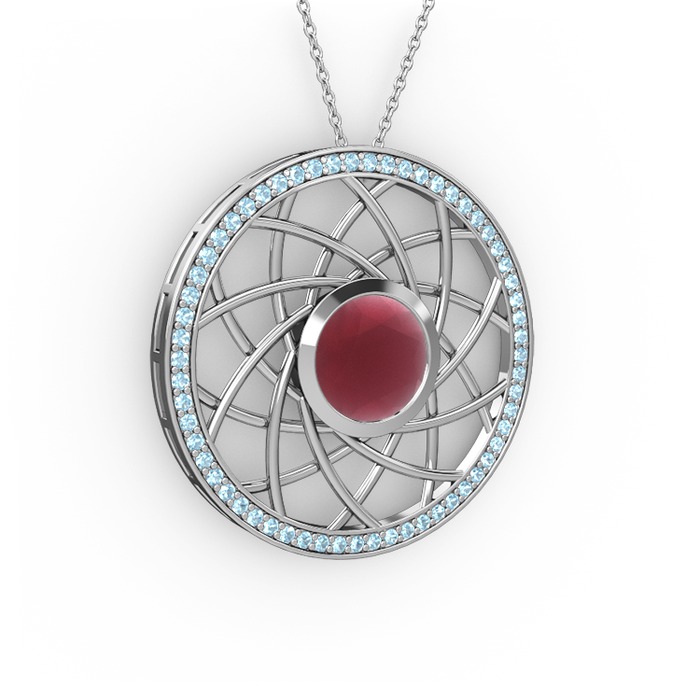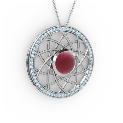 Kök yakut ve akuamarin 925 ayar gümüş kolye (40 cm beyaz altın rolo zincir)
