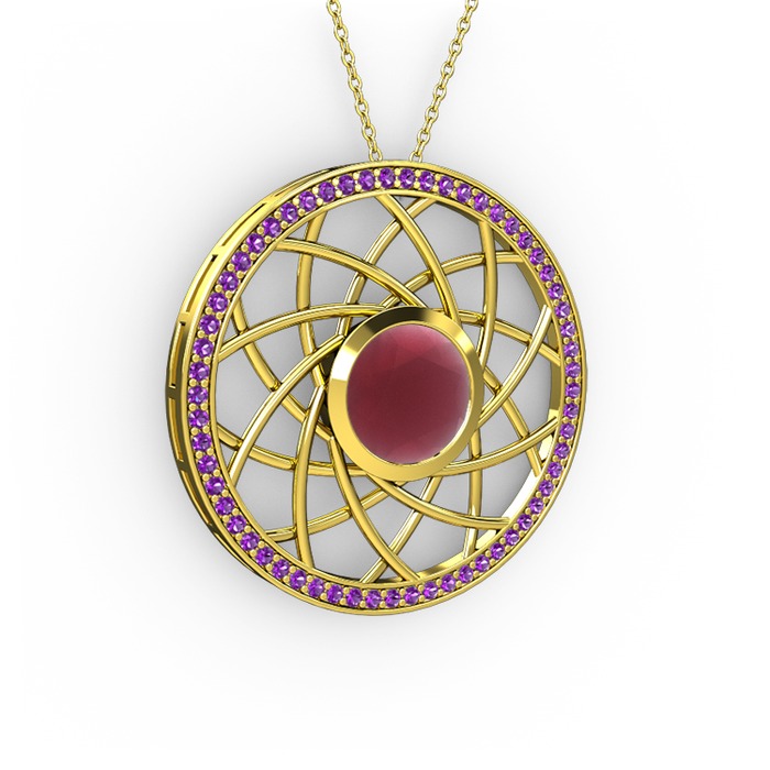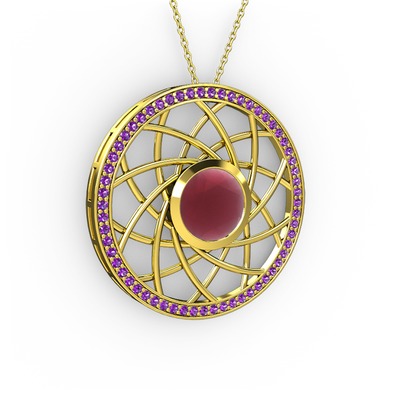 Kök yakut ve ametist 14 ayar altın kolye (40 cm gümüş rolo zincir)
