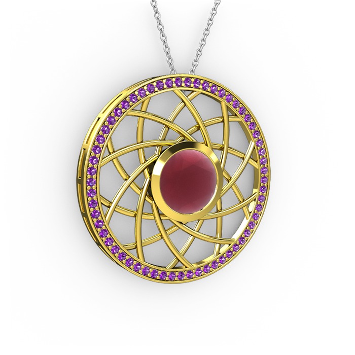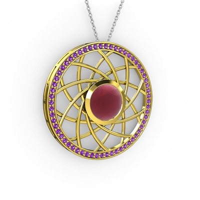 Kök yakut ve ametist 18 ayar altın kolye (40 cm beyaz altın rolo zincir)