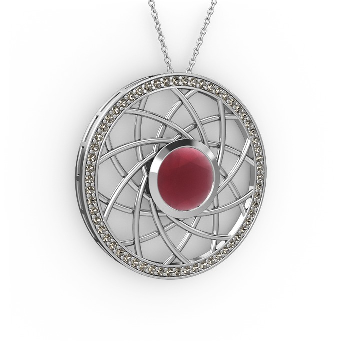 Kök yakut ve dumanlı kuvars 14 ayar beyaz altın kolye (40 cm beyaz altın rolo zincir)
